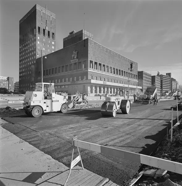 Asfaltering av Rådhusplassen.
