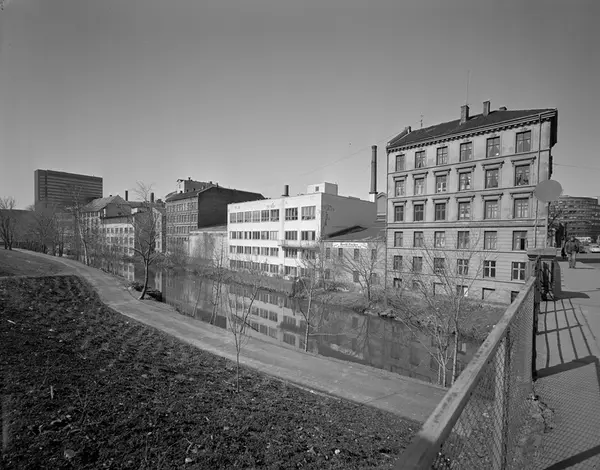 vei, elv, forretningsgårder, fabrikkbygninger, bygårder