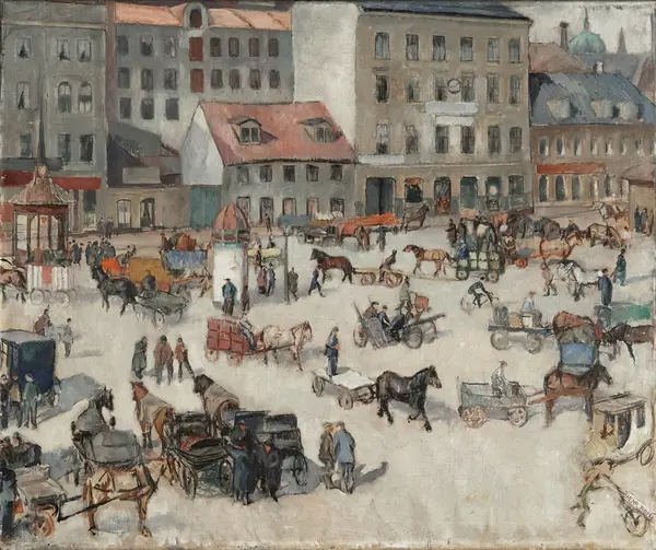 torghandel, boder, hester, kjerrer, vogner, handel, plass, matvarer