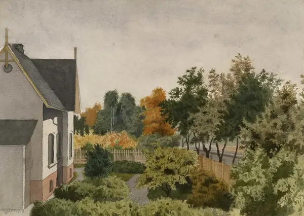 Har vært oppklistret på papp hvor med følgende påskrift: Hjørnet Parkveien og Wergelandsveien. 76 / Mantheys gaard