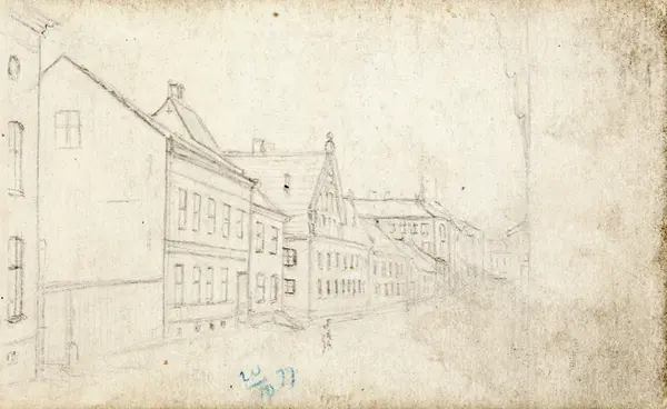 Nedre Slotsgate:/ Seet fra Waisenhusporten/ Sykehuset et stykke/ nede (baksiden)