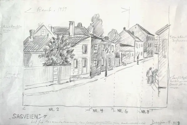 På baksiden en kartskisse over Sagvn. og Maridalsvn.