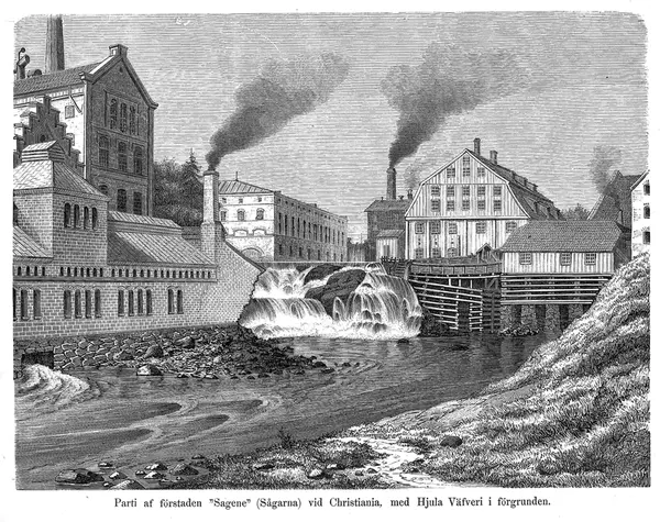 arkitektur, elv, foss, veveri, arbeide, fabrikk