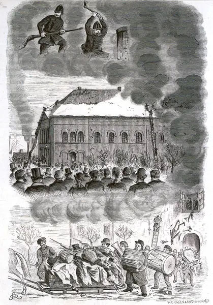 3 bilder fra brannen i Christiania Theater 15/1 1877