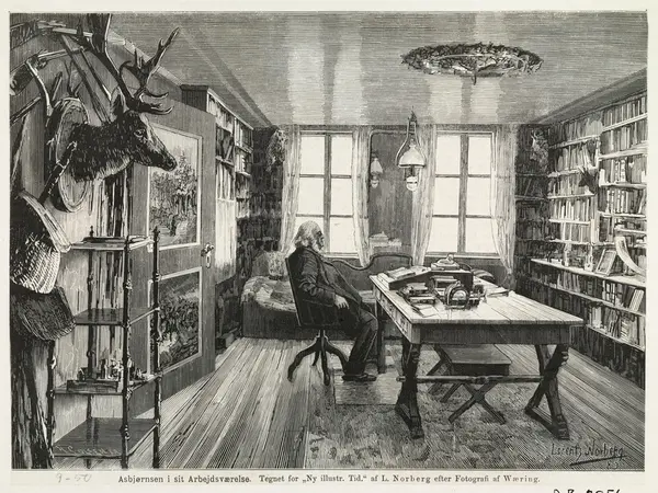 Asbjørnsen i sit Arbejdsværelse. Tegnet for "Ny illustr.Tid." af L. Norberg efter Fotografi af Wæring