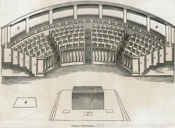 Grunnplan over Stortingssalen. Dronningensgt. 15