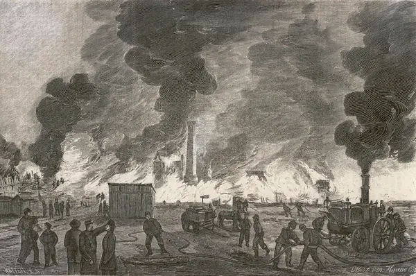 Branden paa Sørengen den 22de Juni. Efter Tegning af A. v. Hanno