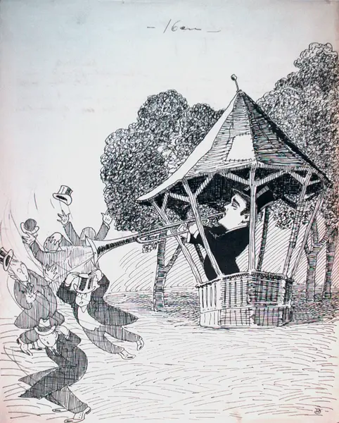 Tegnet i anledning av at K. Meyer kjøpte "Paddehatten" for 800 kroner.