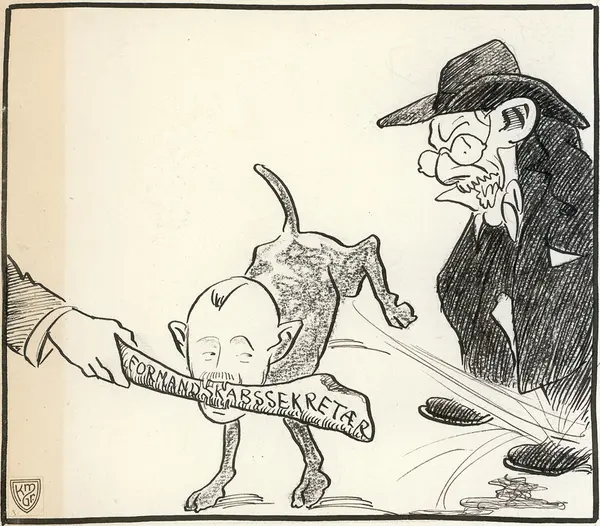 Karikatur av (fra venstre) Gustav A. L. Heiberg og Christian H. Knudsen.