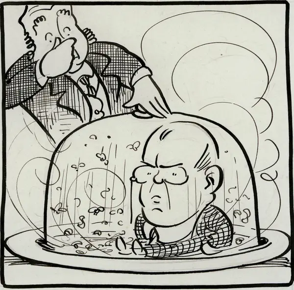 Karikatur av (fra venstre) Olav A. Thommesen og Erling Bjørnson.