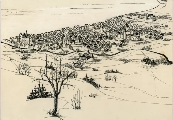 panorama, utsikt, by, middelalder