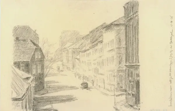 Munkedamsveien sett fra Odd Fellow byggn. I Forgr. hj. av Bakkegaten. 10-4-36.