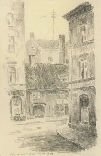 arkitektur, gatehjørne, hjørnegårdpipe, lykt, portrom