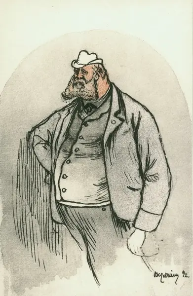 Karikatur, kusntner, mann, helfigur, ansiktshår, hodeplagg, dress