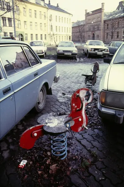 parkeringsplass, biler, lekeapparat, bygårder, Frydenlunds bryggeri,