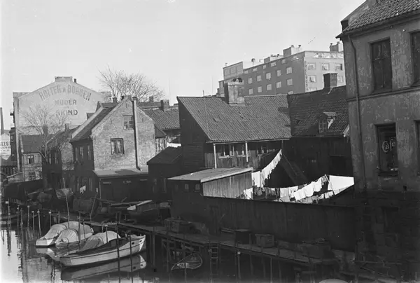 elv, småbåthavn, trehusbebyggelse, klestørk, bygårder, Frelsesarmeens gård