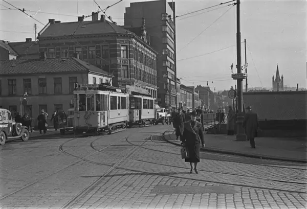 gateløp, Vaterlands bru, trikk, biler, mennesker, gateliv, bygårder, kontorbygning