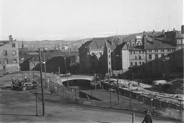 gateløp, bro, bygårder, byggetomt, Hovedbrannstasjon, Torggata bad