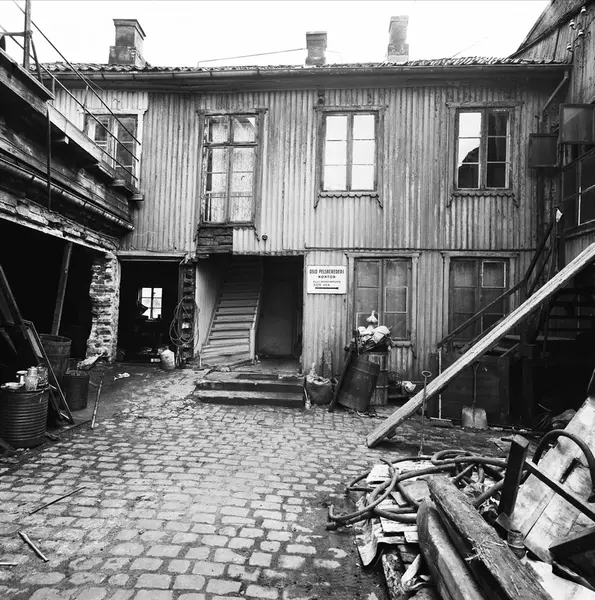 trehusbebyggelse, gårdsinterør, Oslo pelsberederi, brostein
