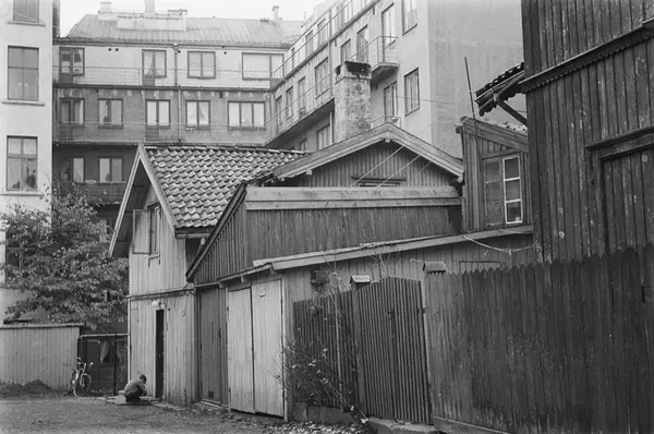 gårdsinteriør, trehusbebyggelse, uthus, bygårder