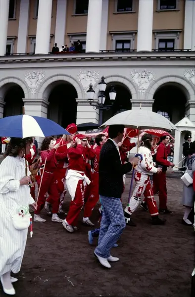 17. mai-feiring, russetog, paraplyer, Slottet, kongefamilien på balkongen