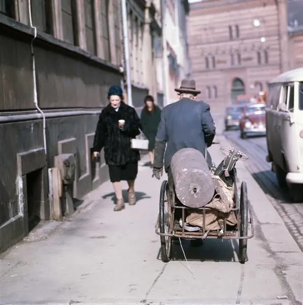 gateløp, fortau, mennesker, mann med håndkjerre, Frydenlunds bryggeri