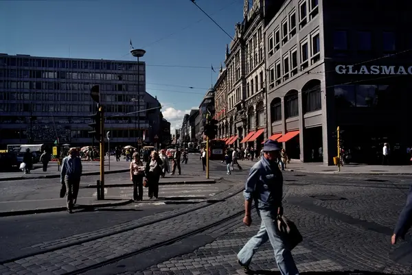 torg, gateløp, mennesker, trafikklys, fotgjengerovergang, brostein, trikkeskinner, forretningsgårder, Christiania Glasmagasin