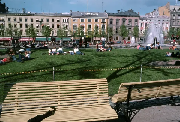 park, benker, mennesker, basseng, fontene, forretningsgårder