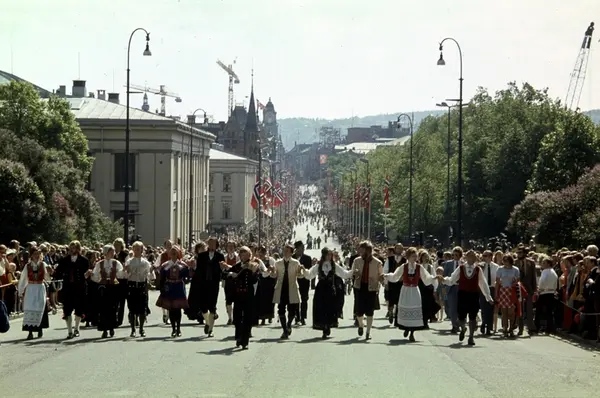 Det er tradisjon med folkedans før barnetoget på Karl Johan. Bondeungdomslagets leikarring danser frå Egertorget til Slottsplassen.