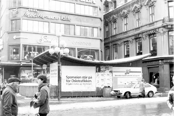 "Hatten" over nedgangen til Sentrum (senere Stortinget) stasjon på Egertorget.