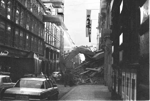 gateløp, forretningsgårder, riving, gravemaskin, biler