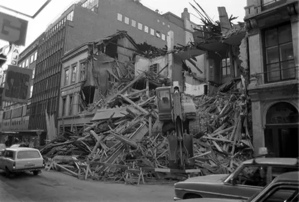 gateløp, forretningsgårder, riving, gravemaskin, biler