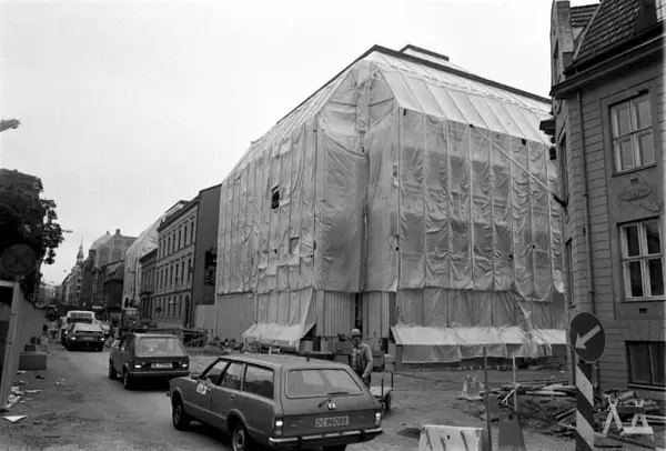 Norge Bank III, kontorbygning, byggevirksomhet, stillasinndekning, bygårder, biler