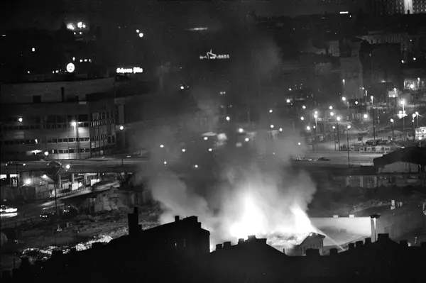 utsikt, bebyggelse, bygårder, Gartnerhallen, brann, Oslo tollsted, nattemørke