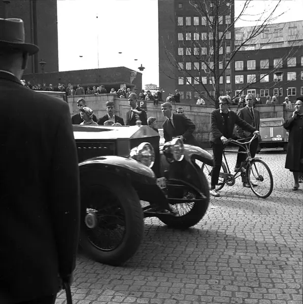 Rådhuset, veteranbilstevne, veteranbil, publikum, sykkel, kontorbygninger