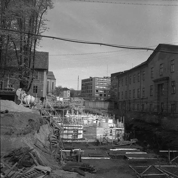 Empirekvartalet, byggetomt for regjeringshøyblokken, Militærhospitalet, Rikshospitalet, Hovedbrannstasjonen, kontorbygning, Margaretakyrkan, bygård