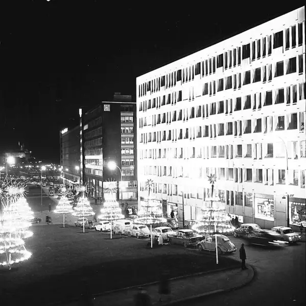 gateløp, julegate, biler, mennesker, kontorbygninger
