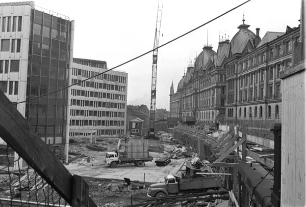gateløp, anleggsarbeid, byggevirksomhet, lastebiler, kran, kontorbygninger, forretningsbygg, Victoria terrasse