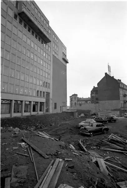 kontorbygning, bygård, rivningstomt, biler, Vestbanestasjonen