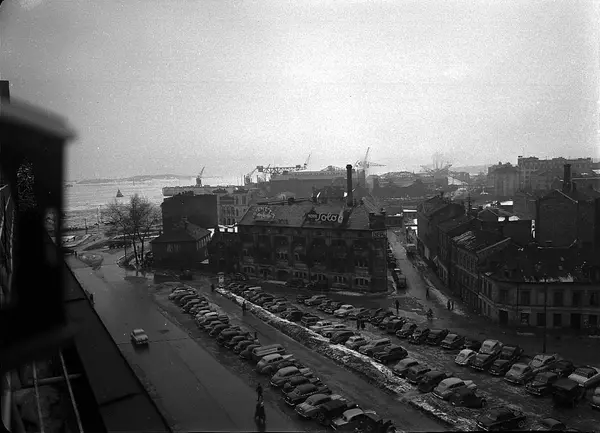utsikt, gater, Cheval dyrehospital, Vika politistasjon, bygårder, byggetomt, parkeringsplass, biler, fjord, Akers mek. Verksted