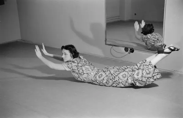 Lillebil Ibsen gjør morgengymnastikk.