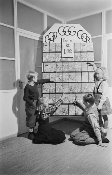 reklameplakat for Gyldendals Gode Guttebøker (GGG), Gyldendals Gode Pikebøker (GGP), Gyldendals Gode Barnebøker (GGB), gutter, jenter