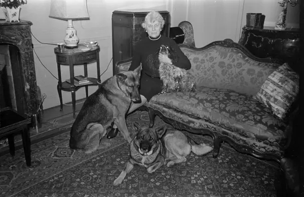 portrett, kvinne, USAs minister i Norge fra 1937 til 1940, sittende helfigur, hunder, stue