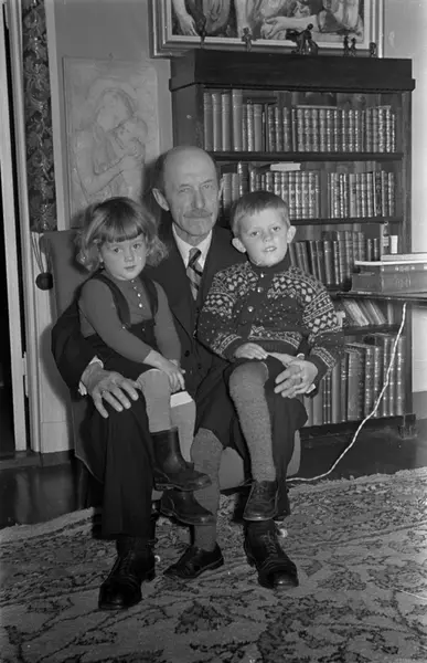 mann, forfatter, sittende helfigur, barn, jente, gutt