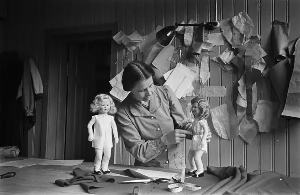 Rønnaug Petterssens dukkefabrikk, interiør, kvinne, dukkemaker, dukker