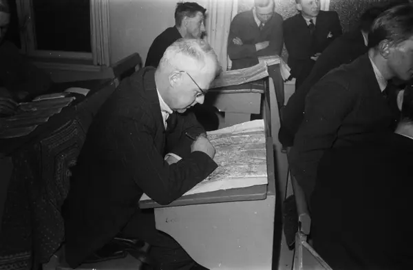 Hegdehaugen skole, interiør, klasserom, menn, studenter, frivillig militæropplæring