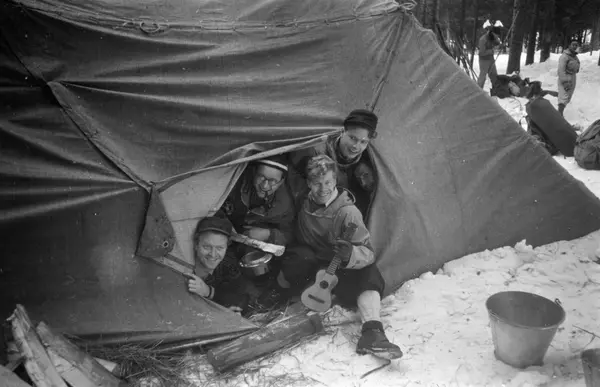 menn, studenter, frivillig militæropplæring, bivuak, gitar