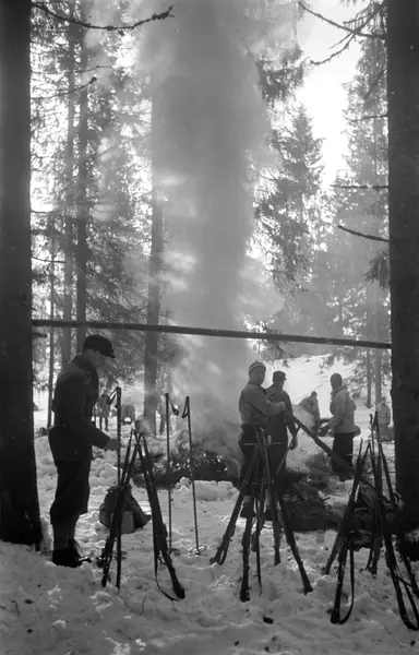 menn, studenter, soldater, ski, frivillig militæropplæring, tenning av bål
