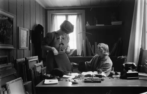 Unge Kunstneres Samfunds varebyttesentral, interiør, kontor, kvinner