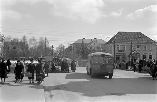 krigsutbrudd, mennesker, flukt, buss, biler, villabebyggelse, Vinderen apotek